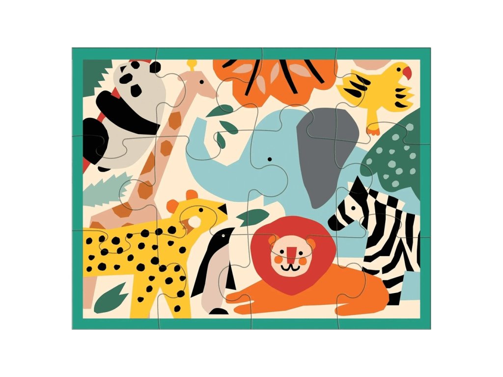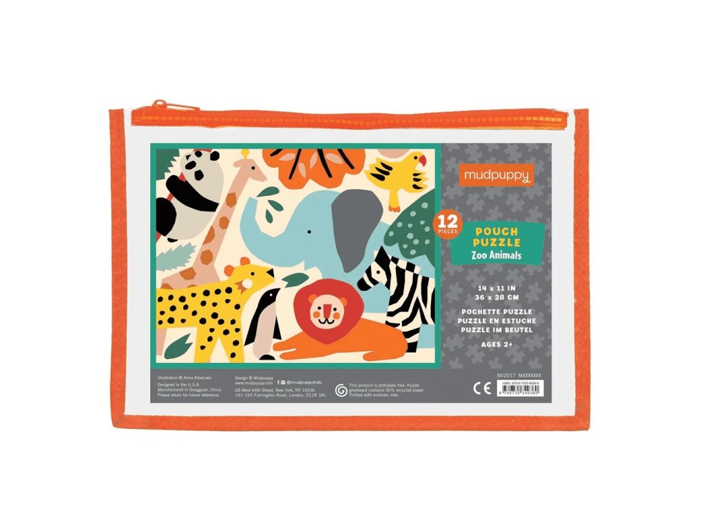 Děti milují zvířátka. Díky puzzle se zvířátky v zoo se i to Vaše naučí rozeznávat divoká zvířata jako je žirafa, zebra, panda, lev a další. Poutavé barvy, roztomilé obrázky a extra silné kousky puzzle jsou ideální pro holčičky i kluky.  A kdyby se děti od skládání nemohly odtrhnout, můžete puzzle zabalit na cesty do přiložené transparentní obálky s textilním lemem, která je opatřena zipem a neobsahuje ftaláty. Puzzle jsou vyrobeny za použití významného podílu recyklovaného papíru a vyznačují se kvalitním  potiskem netoxickými barvami. Všechny produkty Mudpuppy splňují bezpečnostní normy CPSIA, ASTM a CE.  Hlavní vlastnosti: 12 extra silných dílkůnávrh obrázku a ilustrace: Anna Kovecsesvítěz Oppenheim Platinum Best Toy Awardcestovní balenívhodné od 2 letrozvíjí motorické schopnosti dětí
