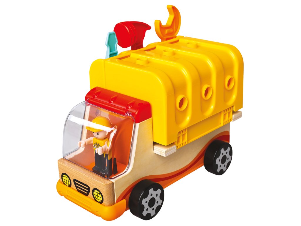 "Multifunční dřevěné auto s řidičem a plastovými doplňky. Poslouží nejen k zábavě vašeho dítěte,