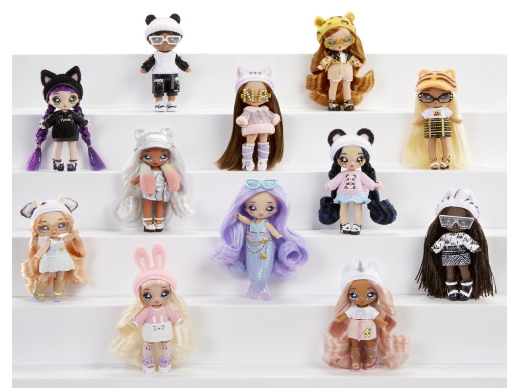 Získej oblíbenou postavičku Na! Na! Na! Surprise v úplně nové velikosti. Panenky měří 10 cm a jsou menší a roztomilejší než kdy dříve. Najdeš je v sáčku s konfetami. Velikost panenky je ideální třeba do vánoční punčochy, velikonočního košíku nebo dárkové tašky na narozeniny. Můžeš jich získat dalších 12 do sbírky! A to již ve 3. sérii těchto malých panenek. Každé panence se otáčí hlava, má čepici, která je měkoučká a chlupatá, a panenky mají pohyblivé klouby v ramenou a kyčlích a krásně česatelné vlásky.
