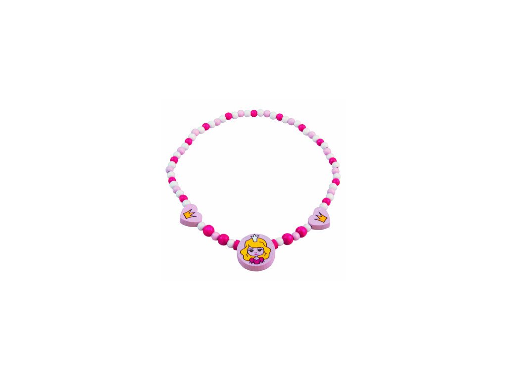 Náhrdelník z dřevěných korálků s obrázkem princezny a korunky, bude ozdobou každé malé slečny.