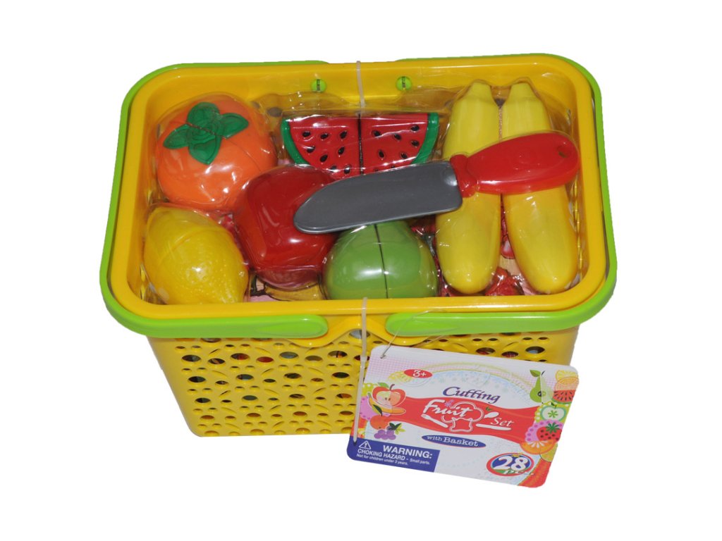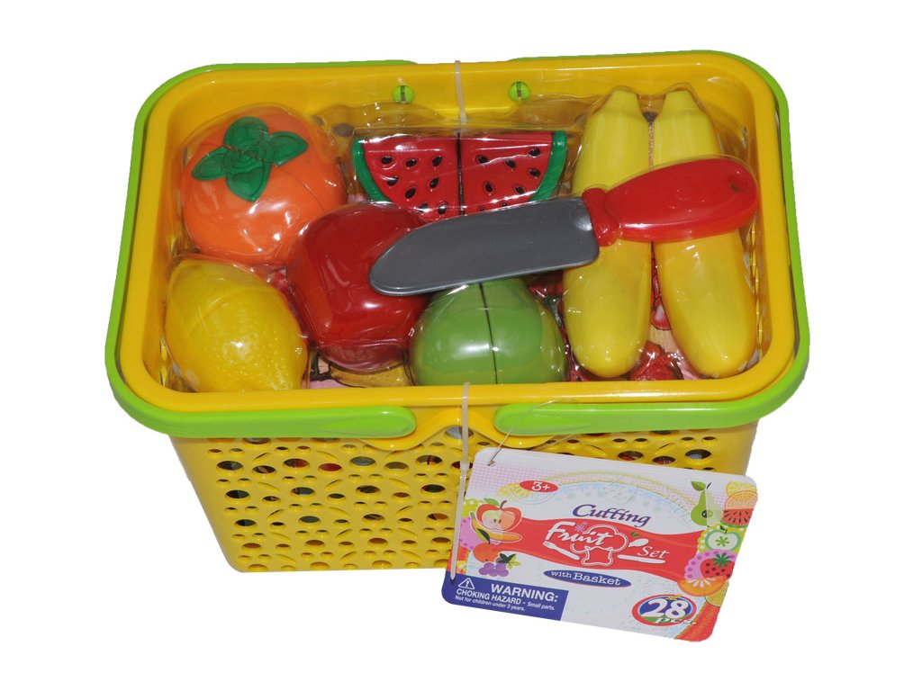 - V praktickém plastovém košíku najdeš makety plastových potravin ovoce jako jsou: banány, meloun, citróny, hruška, ananas, mandarinky, ... - Některé makety jsou ,,rozkrojené na půlky" a spojené suchým zipem - dítě je pak pomocí přiloženého nožíku může rozkrojit. - Hračka je vyrobená z vysoce kvalitního plastu. - Rozměr košíku: 24x12,5x16,5cm
