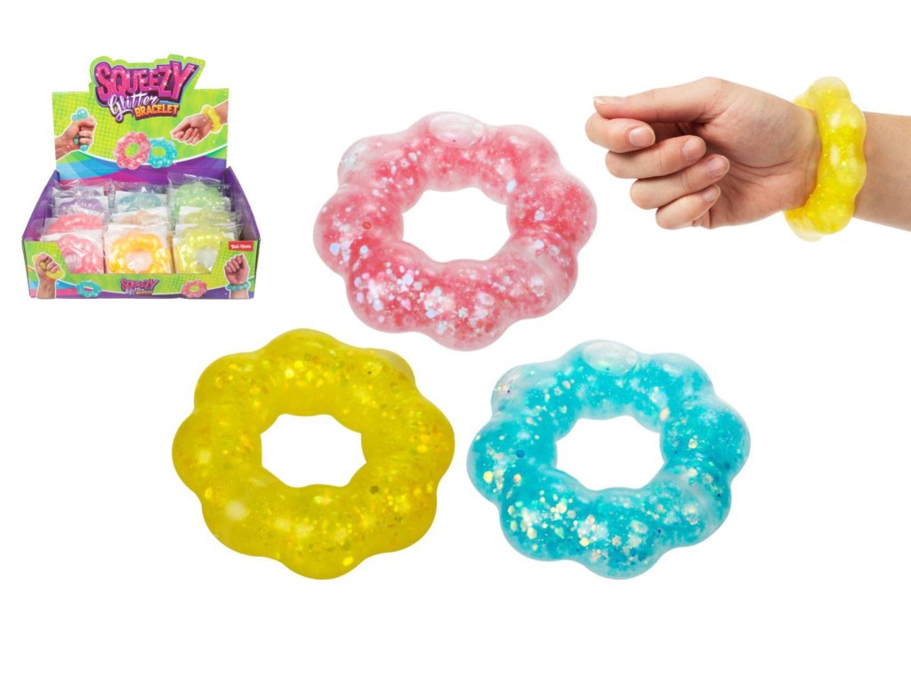 Náramek antistresový mačkací sliz 8cm 6 barev v sáčku 24ks v boxu