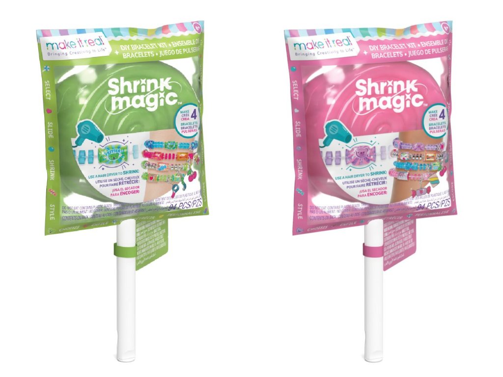 Kouzelné lízátko Shrink je místo, kde se nosí pamlsky, ale tady je kouzlo ve smršťovačce! Vytvořte si sladké a barevné doplňky! Vyberte náramek, poté vyberte obaly s designem cukroví a nandej je na korálky. Snadno aplikujte teplo pomocí fénu (není součástí dodávky) a sledujte, jak se děje kouzlo! Vyrobte si 4 náramky a snadno si je osvěžte různými obaly pro nový vzhled! Tato sada je perfektním dárkem pro holky, které hledají nové způsoby, jak být kreativní a vyjádřit svůj jedinečný styl, bez ohledu na příležitost.