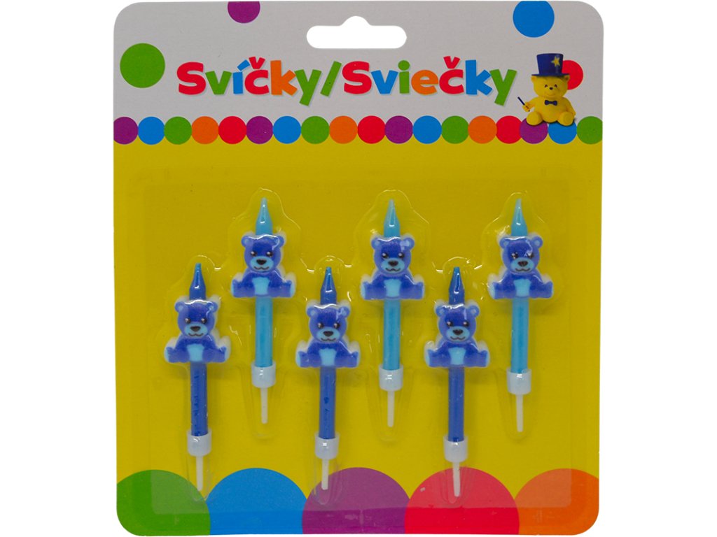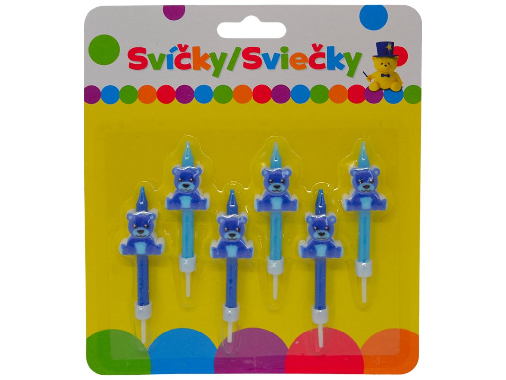 Narozeninová svíčka s modrým MEDVÍDKEM a držákem 6ks
