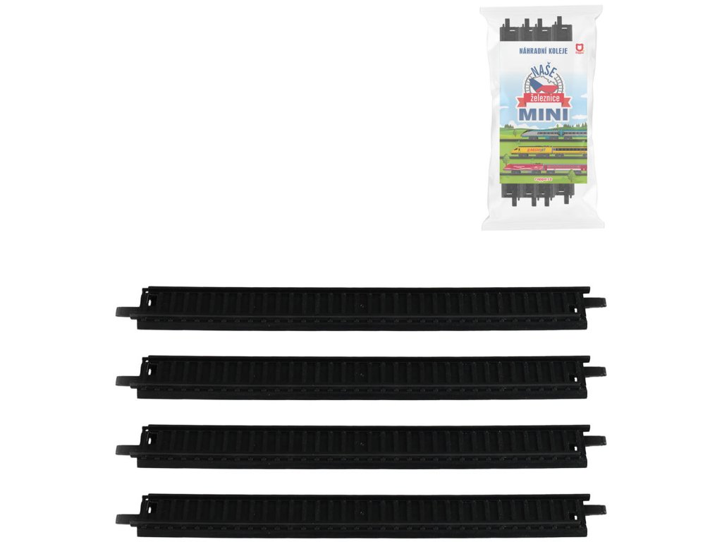 Náhradní koleje k vláčku z kolekce Naše železnice MINI. Součástí 4x rovná kolejnice.