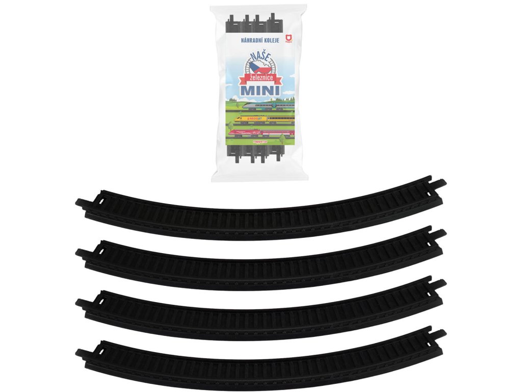 Náhradní koleje k vláčku z kolekce Naše železnice MINI. Součástí 4x zahnutá kolejnice (oblouk).