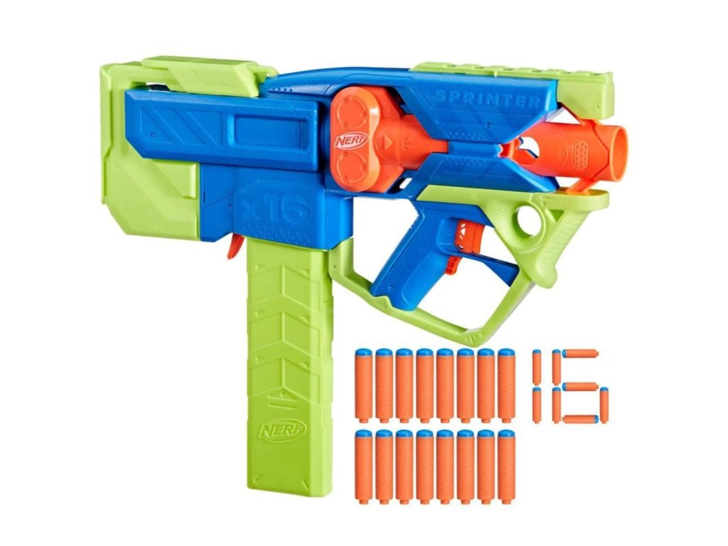Pistole/Brokovnice na pěnové náboje plast 38cm + pěnové náboje 10ks v krabici 40x26x6cm
