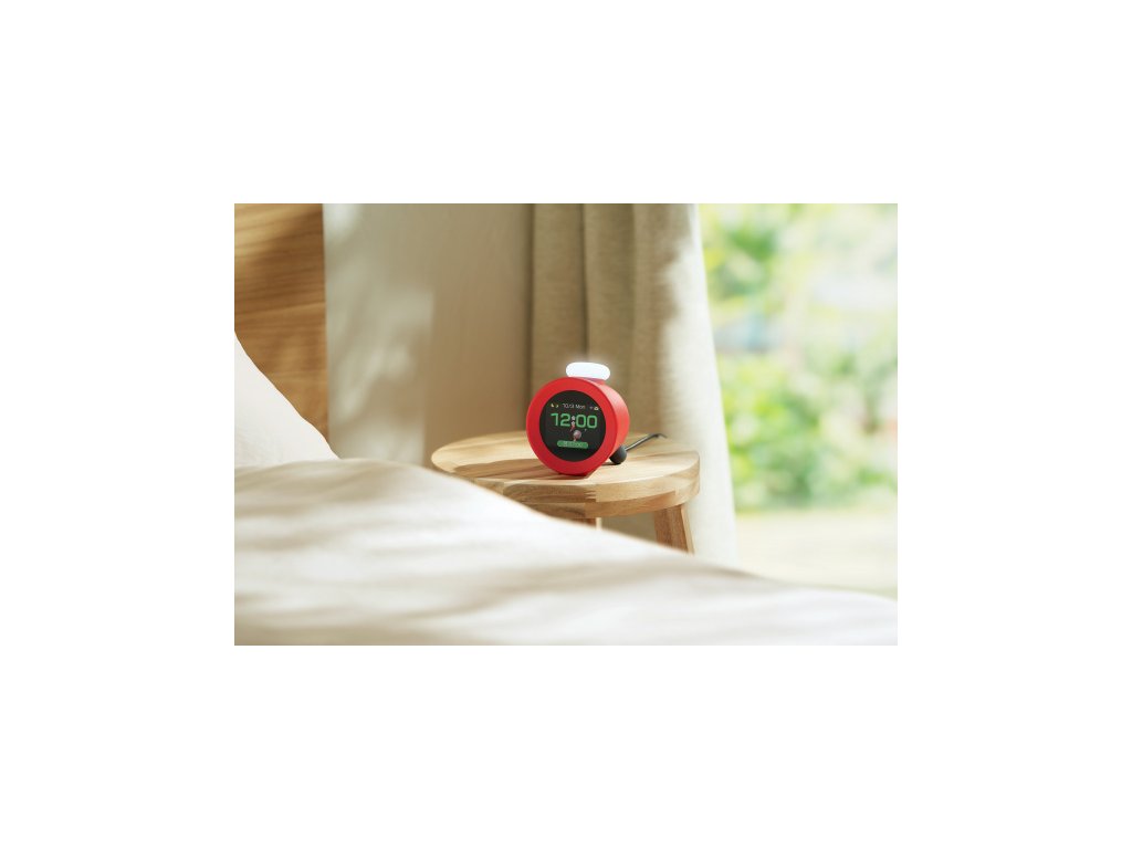Alarmo má senzor, který reaguje na pohyb. Bude tak přehrávat zvuky, pokud si protáhnete ruce nebo se budete nadále převalovat. Budík se ztiší, pokud se naopak zvedete z postele.