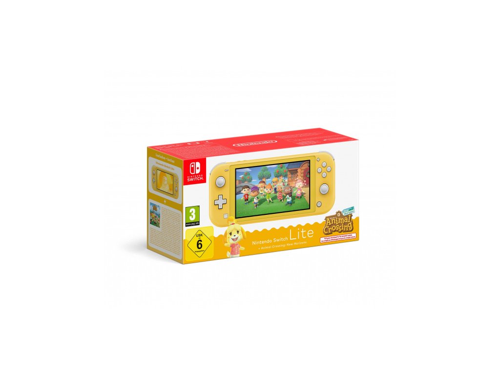 Tento balíček obsahuje konzoli Nintendo Switch Lite Yellow a předinstalovanou hru Animal Crossing: New Horizons.