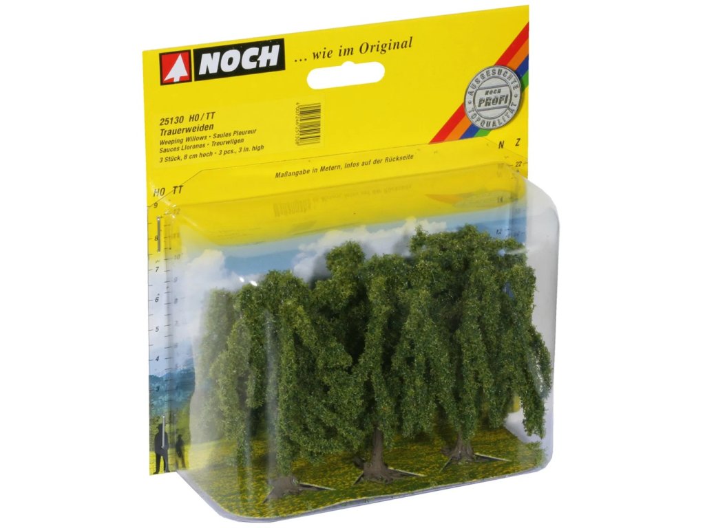 Sada obsahuje tři smuteční vrby o výšce 8 cm ideální pro začlenění do různých modelových scenérií. Díky charakteristickým, až k zemi splývajícím větvím působí stromy tajemně a romanticky a dodávají krajině zvláštní atmosféru. Uplatnění najdou v zahradách, parcích i na volných prostranstvích, kde se přirozeně začlení do okolí a podpoří dojem živé, promyšlené kompozice. Hlavní vlastnosti: jedná se o model, nejedná se o hračkuvhodné od 14 letpro měřítka H0, TTsada 3 ks