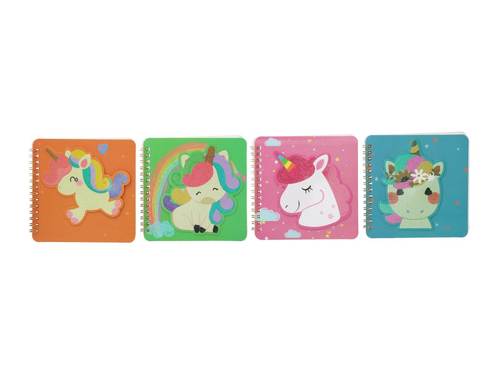 Notes spirála linkovaný 50 stran, 14x14 cm - 3D Jednorožec