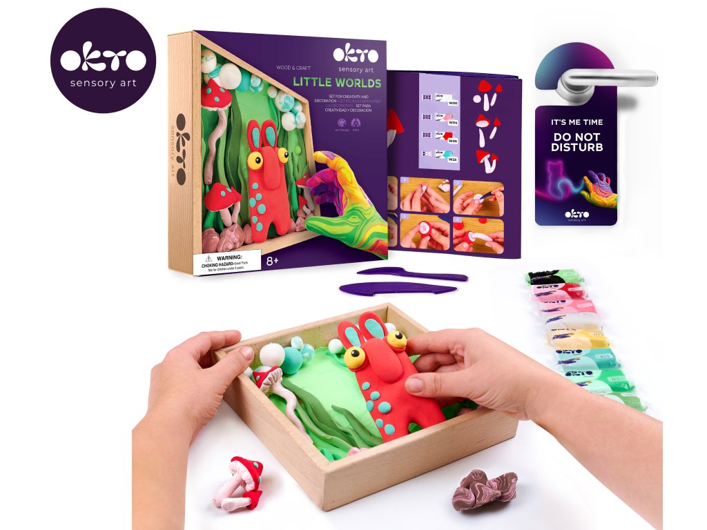 OKTO Modelování Malý svět v rámečku motiv "Skřítek". Velikost rámu 21x21 cm. Vytvarujte 3D scénu podle návodu. Obsah balení - dřevěný rám, obrázkový návod, dřevěný modelovací nástroj, sada samoschnoucí modelovací hmoty, akrylový lak 20 ml, štětec.