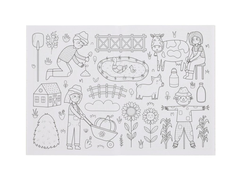 Roztomilé omalovánky Zvířata na farmě přenesou děti na venkov plný veselých zvířátek. Uvnitř najdou obrázky kraviček, prasátek, slepiček, koníků, ovcí a dalších obyvatel farmy. Každá stránka nabízí jednoduchou, přehlednou a hravou ilustraci ideální k vybarvení.