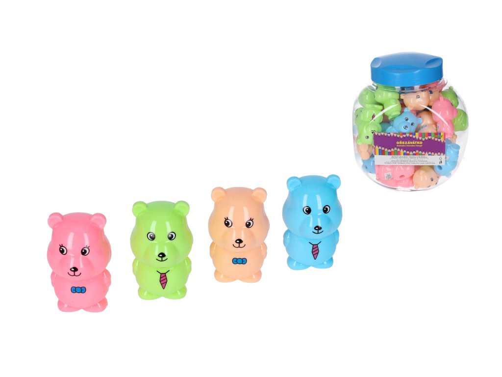 Ořezávátko na jednu tužku se zásobníkem ve tvaru medvídka.