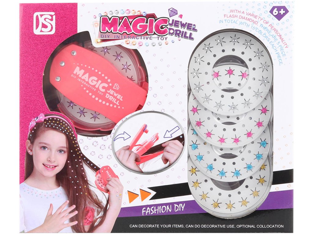 Ozdoby korálky nalepovací do vlasů set aplikátor + 75ks diamantů