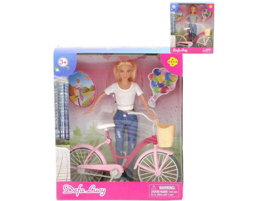 Herní set s panenkou Defa Lucy v letním sportovním oblečku a s jízdním kolem s košíkem, ve dvou barevných variantách provedení. Baleno v krabici.
