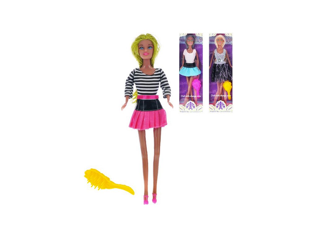 Originální panenka se změnou barvy, v modním fashion oblečku, v sadě s hřebenem, ve třech barevných variantách. Botičky lze sundat. Baleno v krabičce.