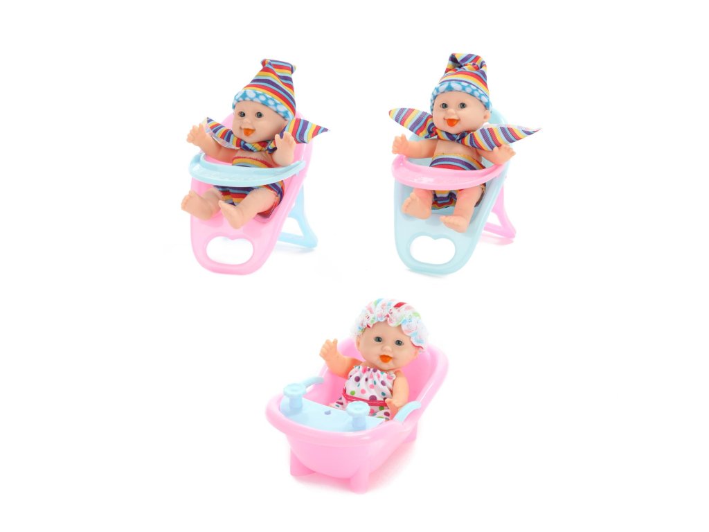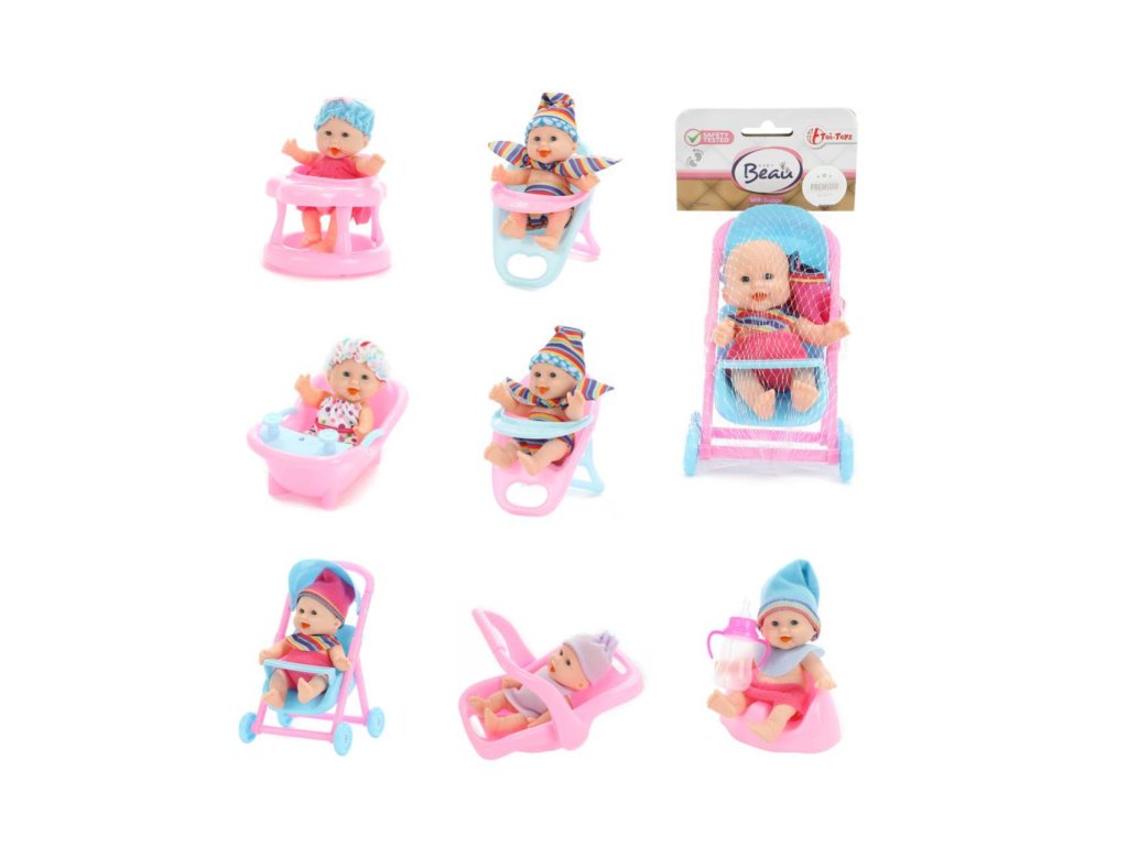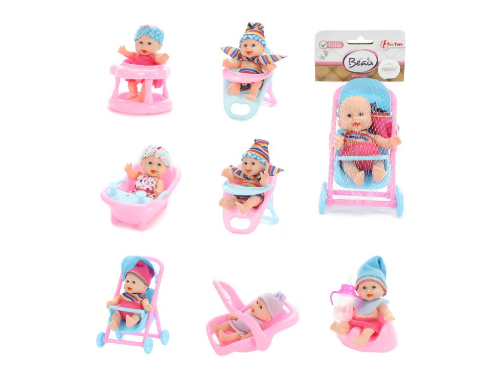 Panenka/miminko s doplňky plast pevné tělo 11cm v síťce