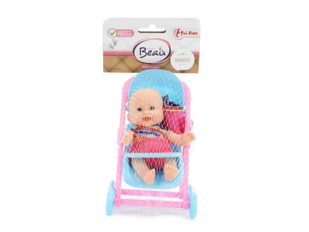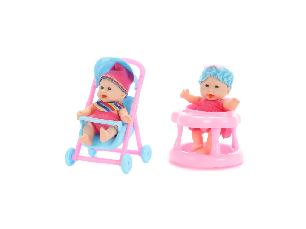 Panenka/miminko s doplňky plast pevné tělo 11cm v síťce