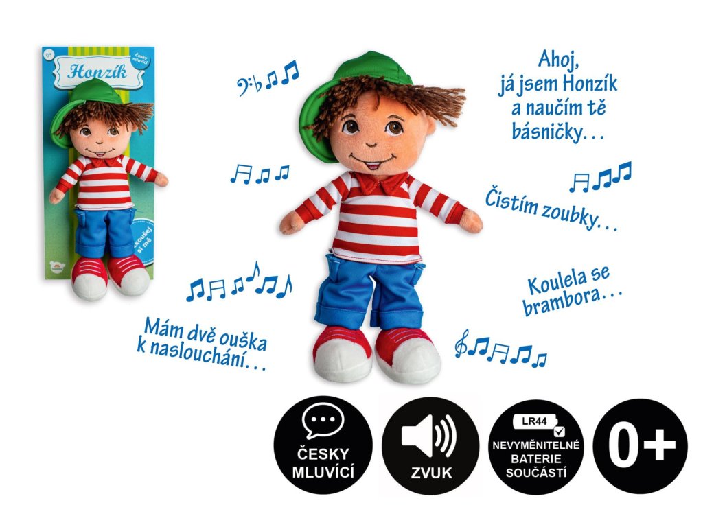 Hadrový kluk Honzík po zmáčknutí bříška povídá: "Ahoj, já jsem Honzík a naučím tě básničky" a říká básničky: "Koulela se brambora..., Čistím zoubky..., Mám dvě ouška k naslouchání..."