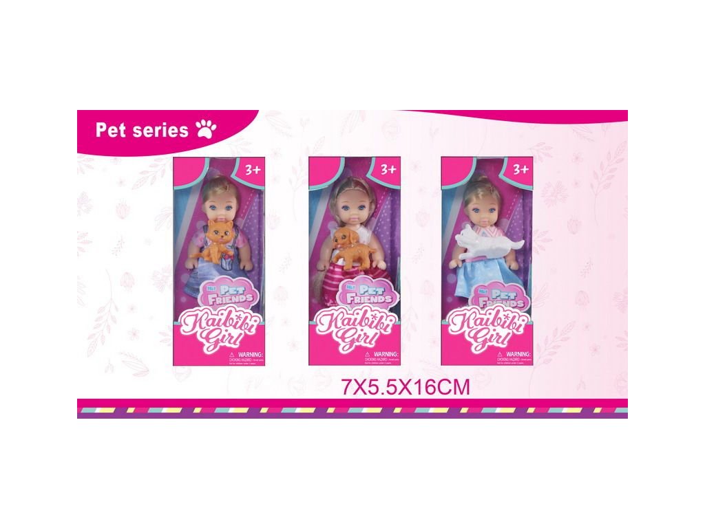 s mazlíčkem. Velikost 11,5 cm. Obsah balení - panenka, zvířátko. 3 varianty.