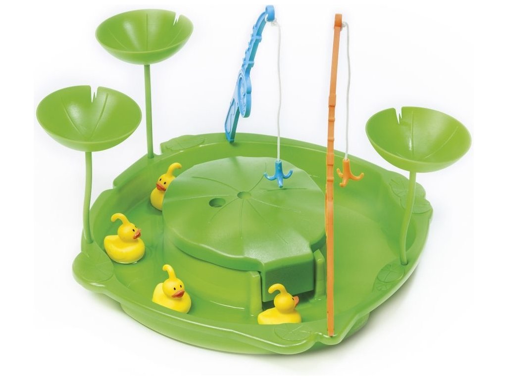 Hra pro malé rybáře, chytání kachniček. Hra je určena pro 1–2 hráče. Balení obsahuje 2 rybářské pruty a 6 žlutých kachniček. Uprostřed herní plochy je ukryt motor poháněný bateriemi, který rozpohybuje vodu ve vodním okruhu. Kachničky se vydávají na cestu, chyťte je všechny! - Vyrobeno z kvalitního plastu. - Baterie nejsou součástí balení. - Rozměr: 37×37×22cm. - Vhodné prod děti od 3 let