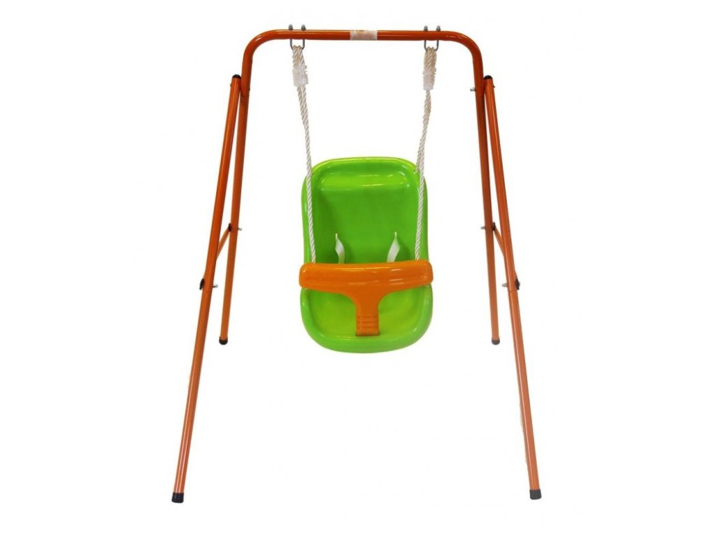 Houpačka má bezpečné sedátko s opěrkou zad a zábranou proti vypadnutí dítěte. Kvalitní rám zaručuje stabilitu dítěte. Houpačka je určena pro domácí užití.