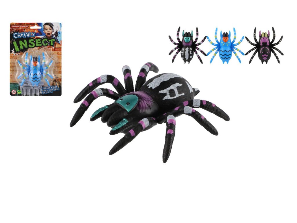 Pavouk lezoucí po skle plast 8cm 3 barvy na kartě