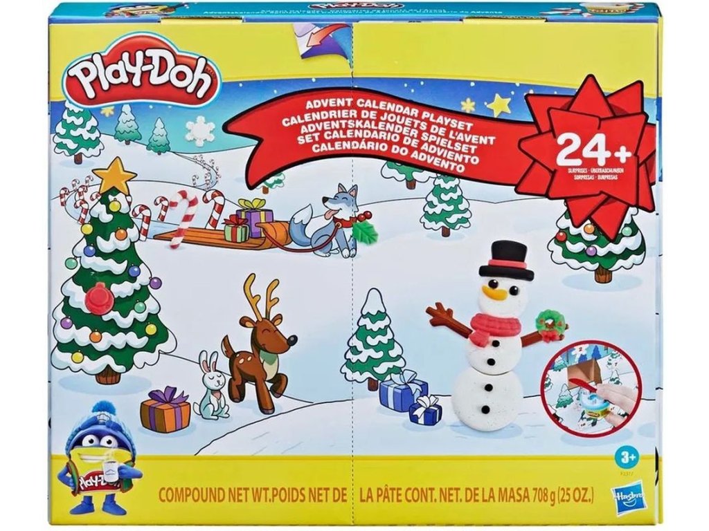 Otevírejte nové dveře každý den od 1. prosince a objevte nové překvapení. Sbírejte všech 24 dárků od PLAY-DOH . Díky zábavným hračkám bude čekání na Vánoce mnohem zábavnější. Kalendář navíc obsahuje 2 podložky s vánočním motivem,pro vytvoření sněhuláka a perníkové chaloupky.