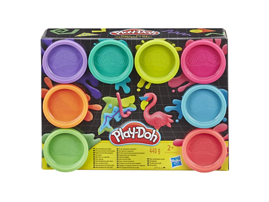 Dodejte svým výtvorům jiskru s těmito osmi neonovými barvami modelíny Play-Doh. Dostupné v tyrkysovém, růžovém, ostře růžovém, zeleném, světle modrém, oranžovém, fialovém a zeleném odstínu.