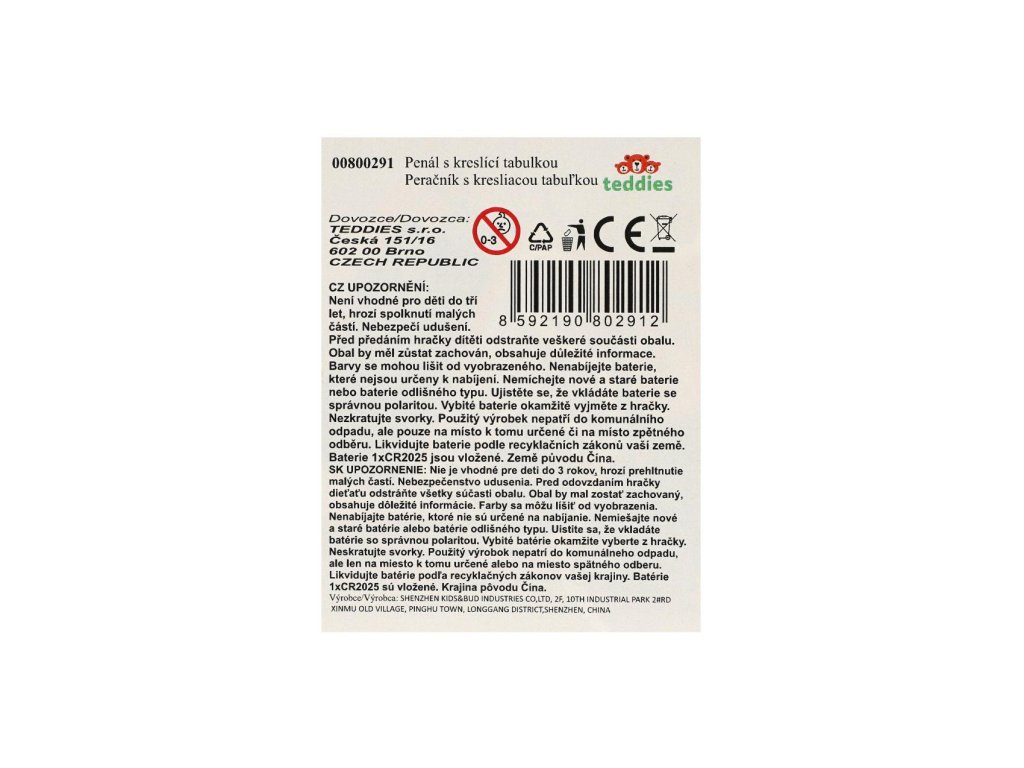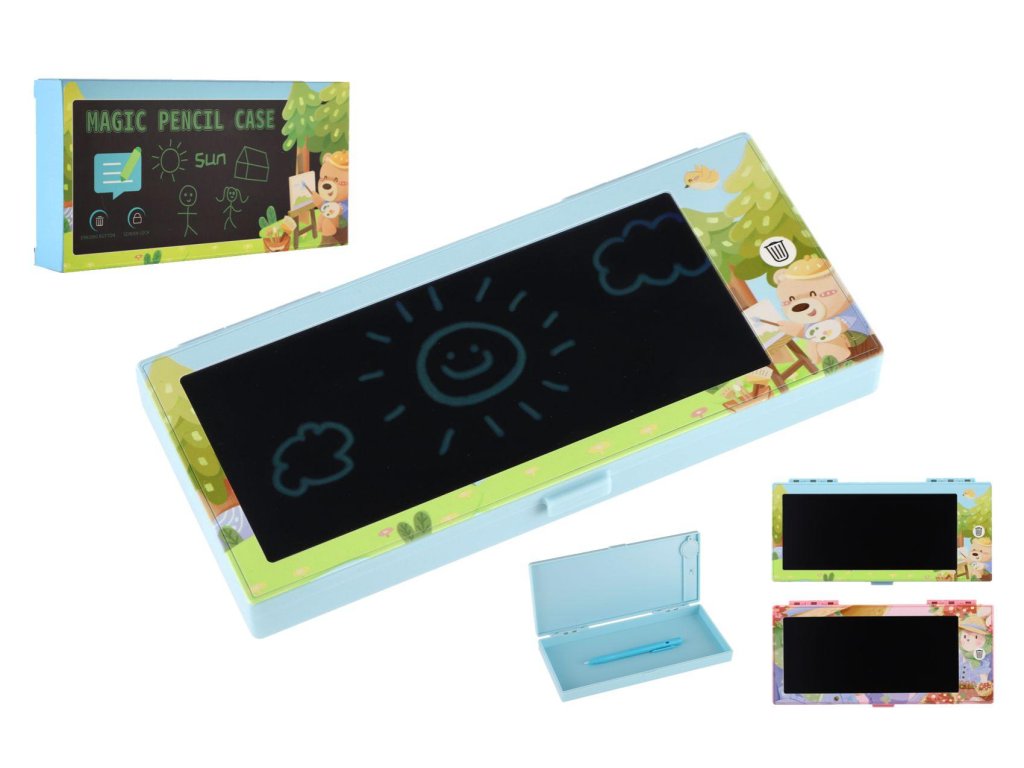 Penál/Pouzdro s magnetickou kreslící tabulkou plast na baterie 2 barvy v krabici 21x10,5x2,5cm