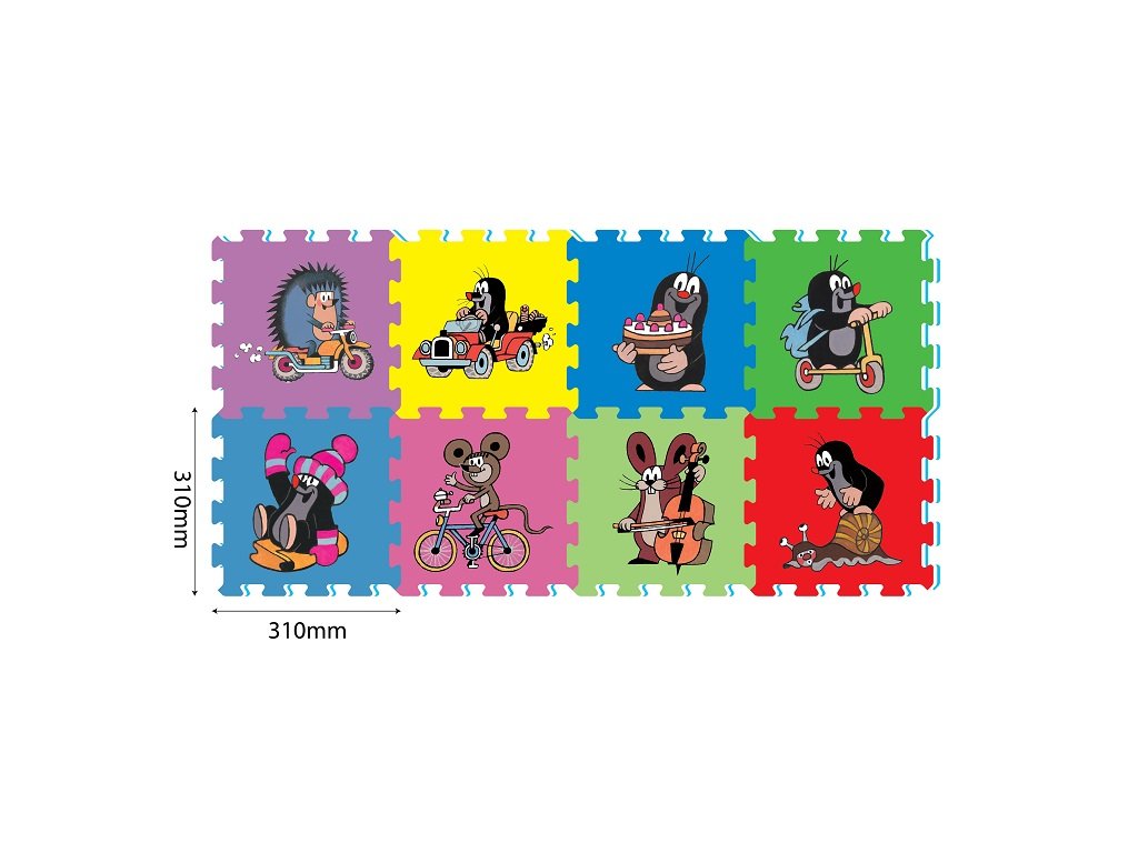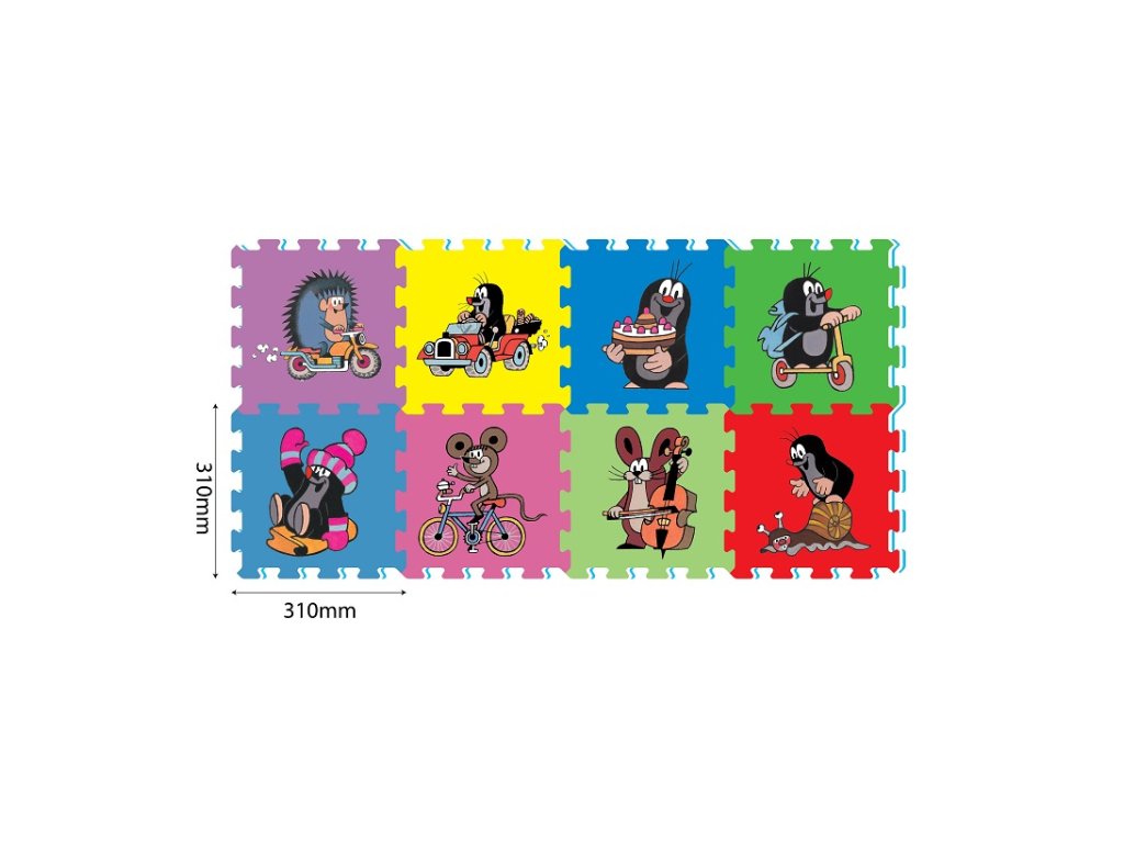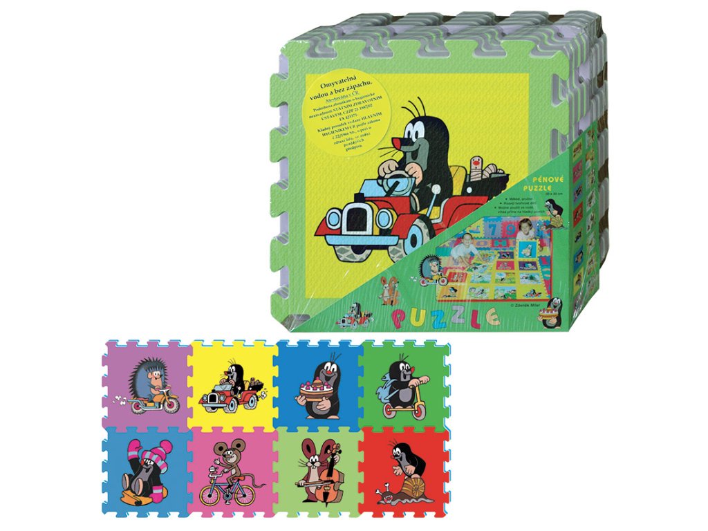 Pěnové puzzle Krtek 30x30cm 8ks Pěnové puzzle s oblíbeným Krtečkem a jeho kamarády. Balení obsahuje 8 puzzle o velikosti 30x30cm. Hračka, ze které si děti mohou sestavit vlastní koš na hračky, knihovnu, hrací koberec na podlahu a spoustu dalších staveb a tvarů dle své zručnosti a fantazie. Puzzle jsou netoxické, bezpečné, lehké, omyvatelné a bez zápachu. Atestováno v ČR. Rozměry po sestavení: 60x120cm