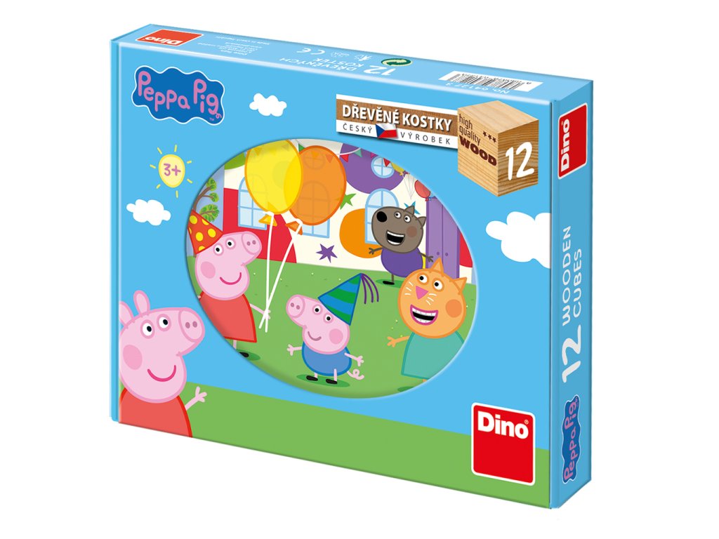 Kvalitní dřevěné kostky 12 ks s šesti obrázky k pohádce Peppa Pig.