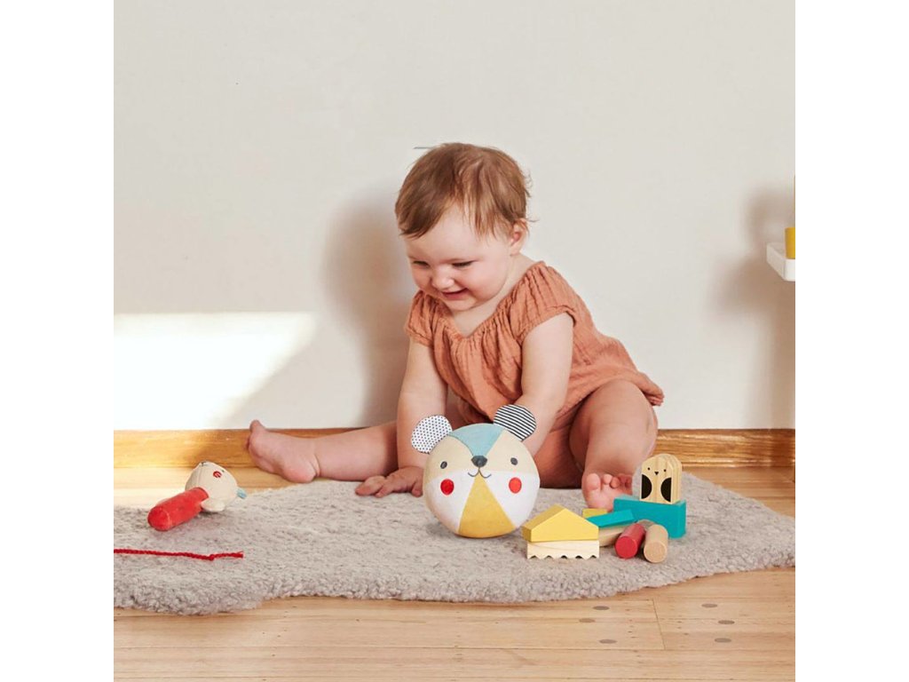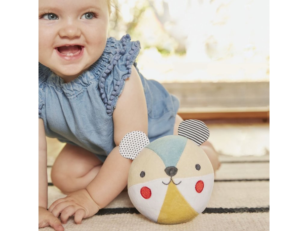 Textilní chrastítko pro děti od narození. Hlavní vlastnosti: Použity barvy na rostlinné bázi šetrné k životnímu prostředíVyrobeno z organické bavlny nejvyšší kvality, certifikováno GOTS