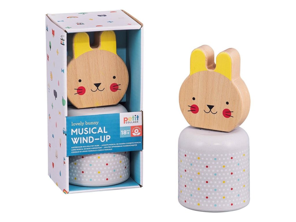 Petit Collage Dřevěná hrací postavička Zajíček - kreativní hudební hračka pro děti od 18 měsíců. Zajíček otáčí hlavičkou a hraje uklidňující uspávací melodii. Hlavní vlastnosti: Hlava zajíčka vyrobena z kvalitního certifikovaného FSC dřeva, tělo je vyrobeno z MDF dřeva a bioplastuHraje 3 minuty ukolébavkyBarveno šetrně k životnímu prostředí, potištěno rostlinnými inkoustyBaleno ve 100% recyklovatelných obalech Značka a certifikát FSC® (Forest Stewardship Council) zaručuje, že dřevo, ze kterého byl produkt vyroben, nebylo vytěženo nelegálně a pochází z lesů obhospodařovaných šetrným či přírodě blízkým způsobem, ve kterém jsou dodržovány přísné environmentální a sociální požadavky. Značka FSC® na výrobku znamená, že svým nákupem pomáháte chránit lesy a podporujete šetrné, odpovědné či přírodě blízké hospodaření, díky kterému jsou naše lesy stabilnější, zdravější, mají přirozenou druhovou skladbu a lépe odolávají negativním následkům klimatických změn.