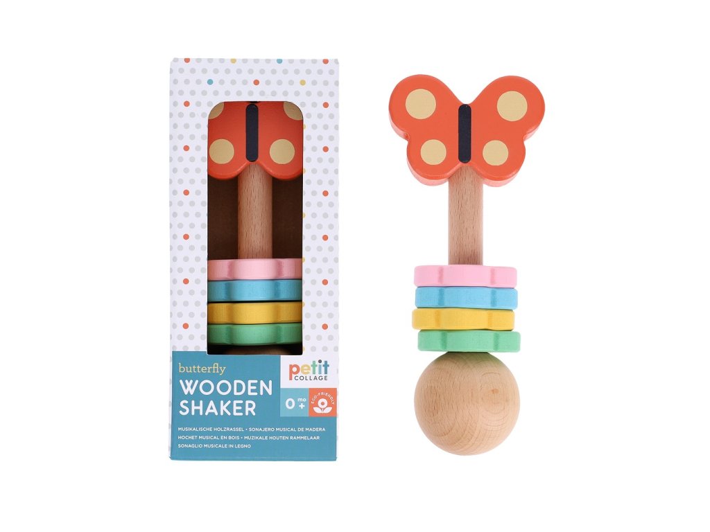 Petit Collage Dřevěné chrastítko Motýl