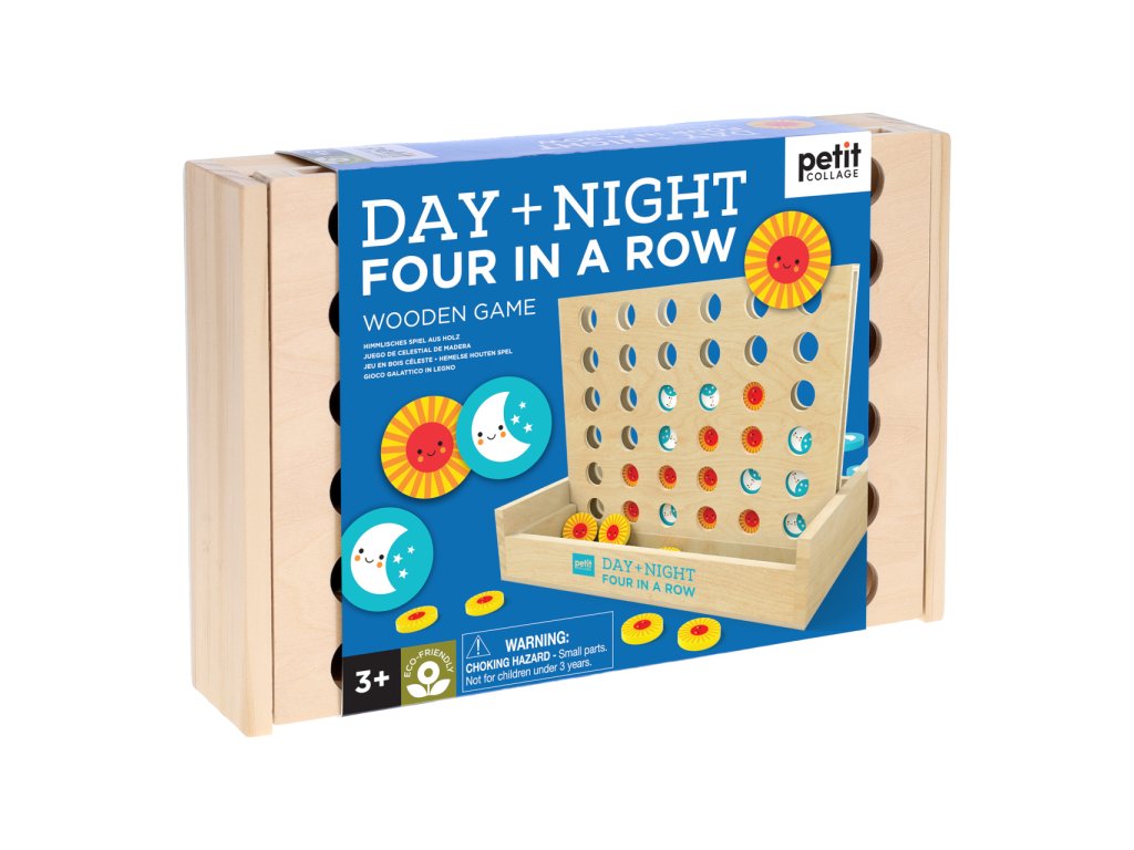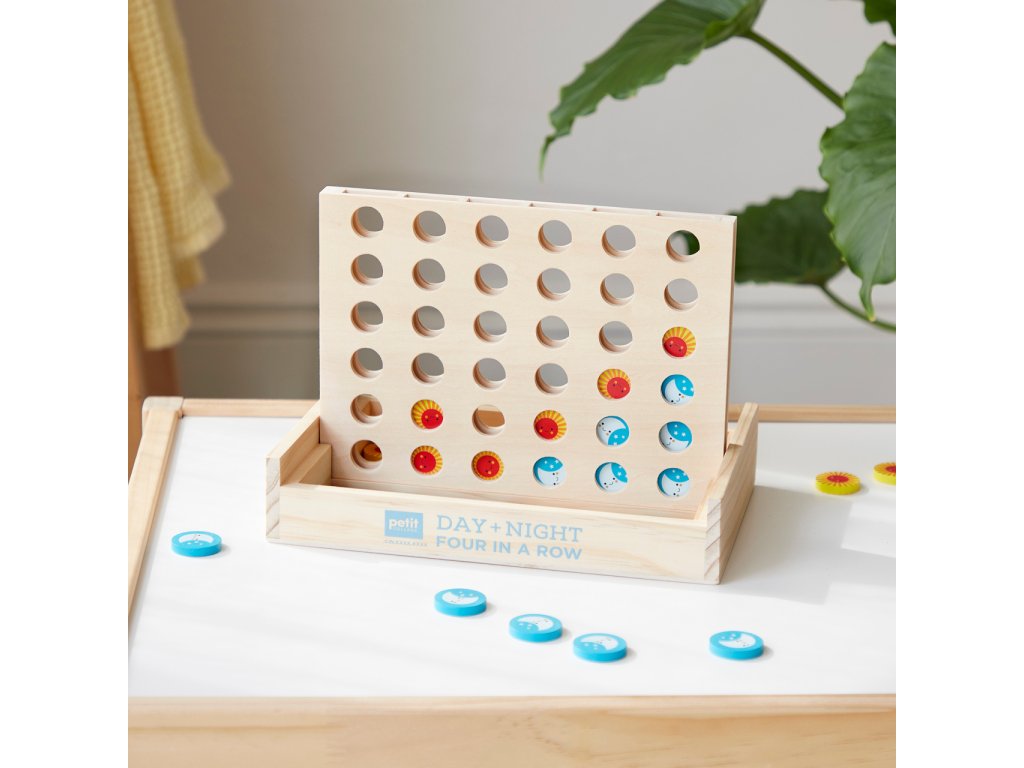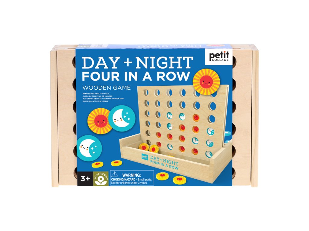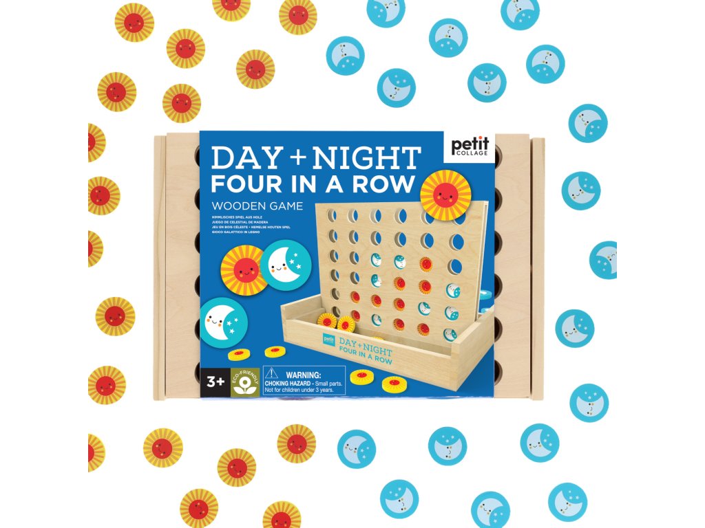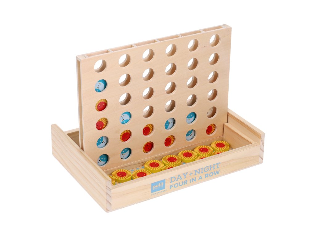 Klasická hra v nebeské verzi, dokážete jako první seřadit měsíce nebo slunce? Žetony s vesmírnými tělesy, které se při hře na děti smějou, cílem hry je seřadit 4 žetony diagonálně, vertikálně nebo horizontálně, jako v piškvorkách. Vyrobeno z FSC dřeva, vhodné od 3 let. Hlavní vlastnosti: klasická hra podobná piškvorkámvhodné domů i na cestyFSC dřevo Zkrácený návod hry:Cílem hry je jako první seřadit 4 žetony vertikálně, horizontálně nebo diagonálně.Nasaďte perforovanou hrací desku svisle do výřezu uprostřed boxu. Hru umístěte mezi 2 hráče. Rozdělte si žetony dle barev. Začíná nejmladší hráč. Hráč na tahu hodí svrchu do hrací desky 1 žeton, během hry se snaží seřadit 4 žetony své barvy. Jakmile se toto jednomu hráči podaří, tento vítězí. Dokumentace:návod ke hře Čtyři v řadě noc a den (CZ)návod ke hře Čtyři v řadě noc a den (SK) Značka a certifikát FSC® (Forest Stewardship Council) zaručuje, že dřevo, ze kterého byl produkt vyroben, nebylo vytěženo nelegálně a pochází z lesů obhospodařovaných šetrným či přírodě blízkým způsobem, ve kterém jsou dodržovány přísné environmentální a sociální požadavky. Značka FSC® na výrobku znamená, že svým nákupem pomáháte chránit lesy a podporujete šetrné, odpovědné či přírodě blízké hospodaření, díky kterému jsou naše lesy stabilnější, zdravější, mají přirozenou druhovou skladbu a lépe odolávají negativním následkům klimatických změn.