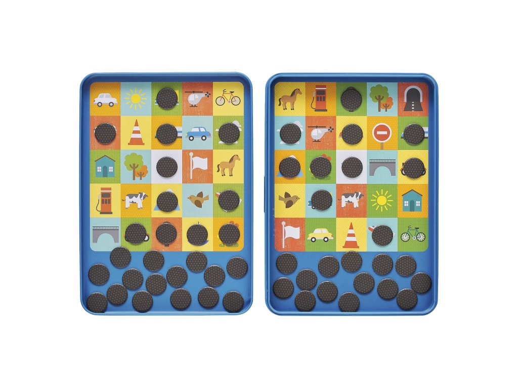 Cestovní bingo v magnetické krabičce Vaše děti nadchne. Kdo bude jako první moci zakřičet „bingo!“, když trefí 5 políček za sebou? Projela kolem Vás motorka, uviděli jste most? Označte je na své herní ploše, buďte ve střehu a užijte si jízdu vlakem, autobusem či autem. Hlavní vlastnosti: Skvělá cestovní hračka v kovové krabičce Natištěno netoxickými barvami, které berou v potaz zdraví dětí a planetu