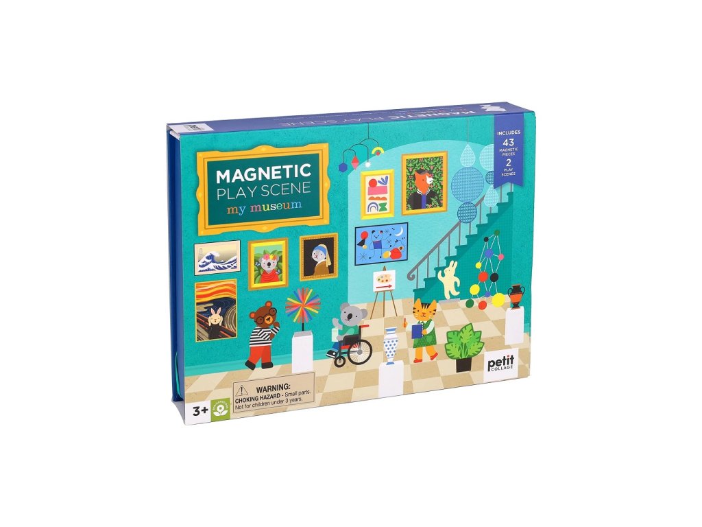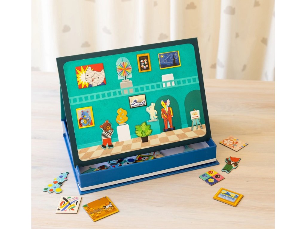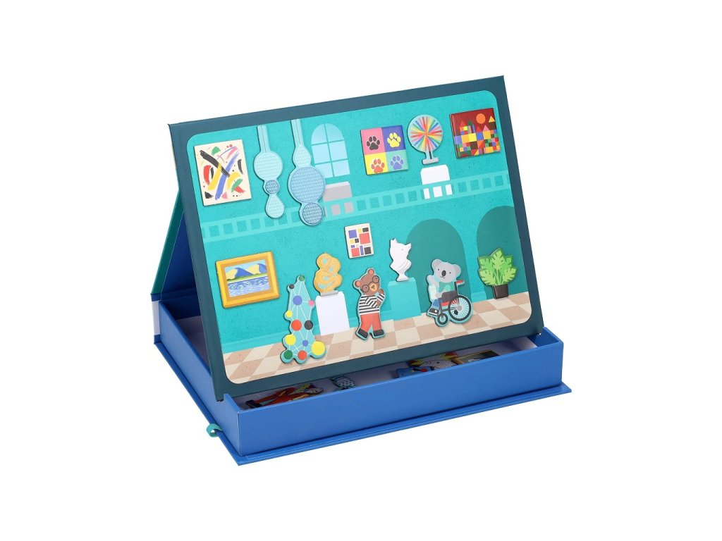 Vytvořte si své vysněné muzeum! Nadekorujte ikonické obrazy či sochy a pak vezměte zvířecí návštěvníky na prohlídku s průvodcem. Tento přenosný hrací set lze použít jako divadélko. Má dvě pozadí, z kterých si můžete vybrat, a také přes 40 magnetických dílků. Magnetickou scénku lze postavit díky zarážkám v krabici. Krabice ve stylu stojanu obsahuje elastickou gumičku, kterou můžete použít pro rychlý úklid. Kreativní hračka s nekonečnými možnostmi kombinací a scén. Pro děti od 3 let věku. Hlavní vlastnosti: 40 magnetických dílků na 2 kartách2 magnetické scénypevná konstrukcevyrobeno z recyklovaných materiálů potištěno rostlinnými inkoustysplňuje všechny evropské bezpečnostní normy Značka a certifikát FSC® (Forest Stewardship Council) zaručuje, že dřevo, ze kterého byl produkt vyroben, nebylo vytěženo nelegálně a pochází z lesů obhospodařovaných šetrným či přírodě blízkým způsobem, ve kterém jsou dodržovány přísné environmentální a sociální požadavky. Značka FSC® na výrobku znamená, že svým nákupem pomáháte chránit lesy a podporujete šetrné, odpovědné či přírodě blízké hospodaření, díky kterému jsou naše lesy stabilnější, zdravější, mají přirozenou druhovou skladbu a lépe odolávají negativním následkům klimatických změn.