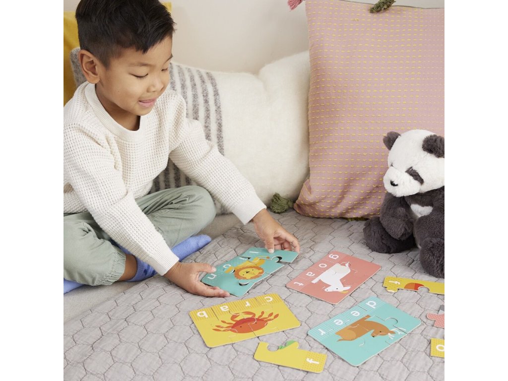 20 navzájem spojitelných puzzlí se zvířátky a jejich anglickým pojmenováním. Tato sada má originální a poutavé zpracování, které spojuje obrázky se slovíčky o 3 až 4 písmenkách. Vzhledem ke své velikosti a tloušťce se slova snadno čtou. Skvělá didaktická pomůcka pro první hláskování a setkání s angličtinou! Hlavní vlastnosti: vyrobeno z FSC papíru, recyklovaných materiálů a potištěno přírodními barvamirozšiřuje slovní zásobu o anglická slovíčkapodporuje jemnou motoriku, soustředěnost a logické myšlenírozvíjí poznávání písmen a zvířat Značka a certifikát FSC® (Forest Stewardship Council) zaručuje, že dřevo, ze kterého byl produkt vyroben, nebylo vytěženo nelegálně a pochází z lesů obhospodařovaných šetrným či přírodě blízkým způsobem, ve kterém jsou dodržovány přísné environmentální a sociální požadavky. Značka FSC® na výrobku znamená, že svým nákupem pomáháte chránit lesy a podporujete šetrné, odpovědné či přírodě blízké hospodaření, díky kterému jsou naše lesy stabilnější, zdravější, mají přirozenou druhovou skladbu a lépe odolávají negativním následkům klimatických změn.