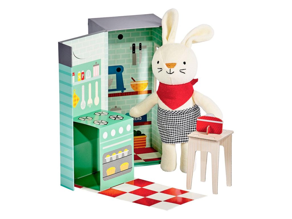 V této kuchyni potkáte králíčka Rubieho, který miluje vaření a pečení, rád bude vařit spolu s Vámi! Má měkkou plyšovou srst a milý úsměv. Vytvořte jídlo, které je velké tak akorát pro Rubieho díky přiložené kuchařce. Recept je opravdový, takže jej můžete uvařit i pro sebe! Hlavní vlastnosti plyšový kamarád pro dítěspolečník pro čtení před spaním3D nábytek, balení funguje také jako herní scénasestavte vlastní kuchařku pro Rubieho podle návoduperfektní pro představivou hru