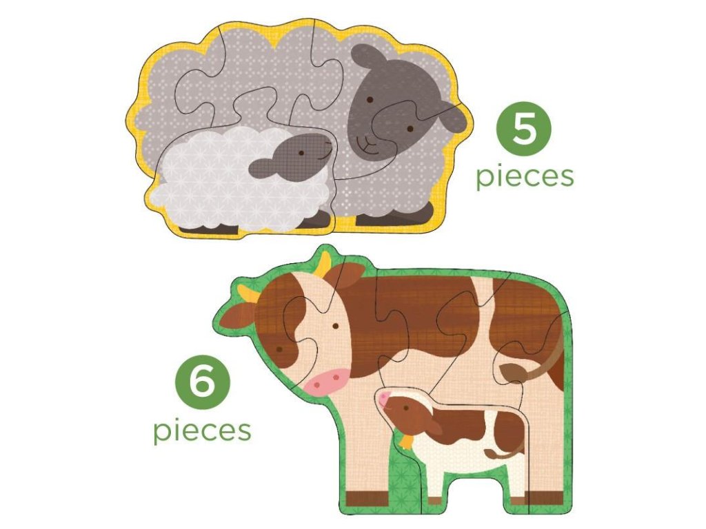 Puzzle, které může růst s Vaším dítětem, zahrnuje čtyři skládačky v různých stupíncích obtížnosti. Baleno v praktické krabičce z recyklovaného kartonu, vybavené provázkovým uchem. Hlavní vlastnosti: 4 zvířátka, 18 dílků celkem (3–6 dílků skládačka)praktické balení