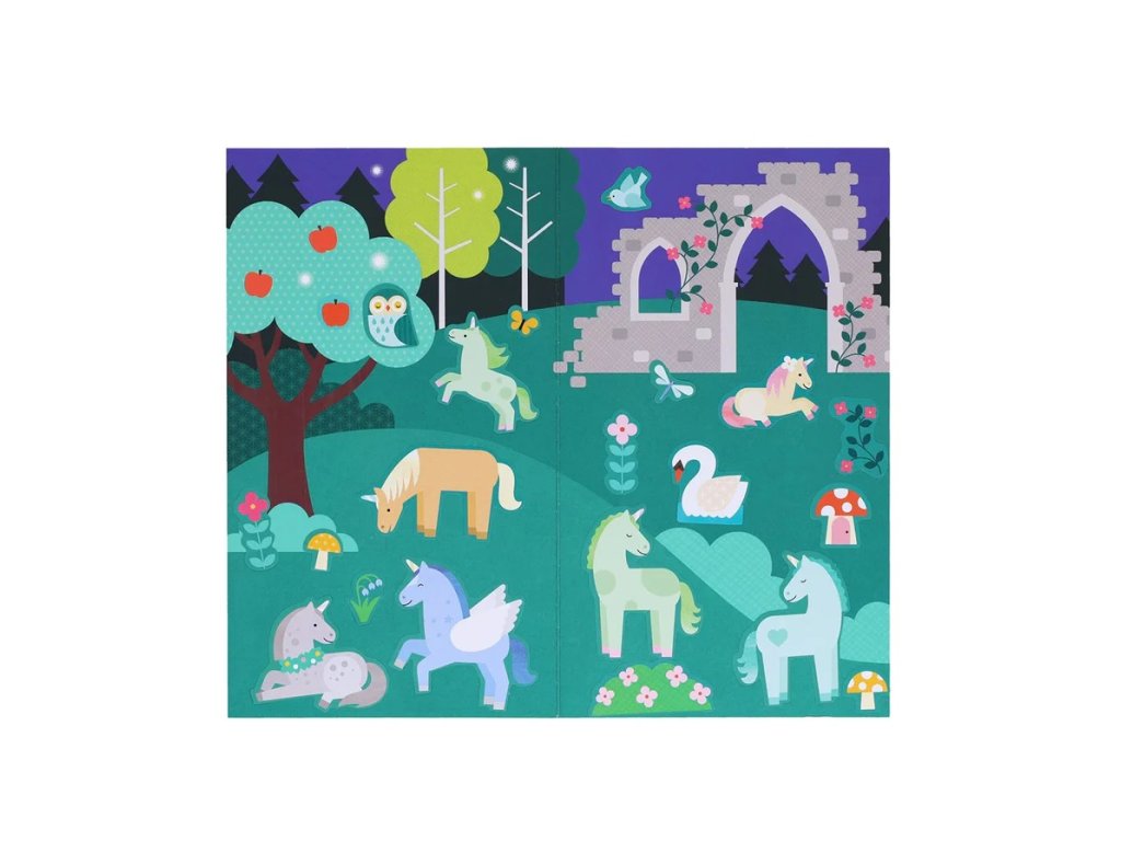Petit Collage Znovupoužitelné mini samolepky Jednorožci v lese