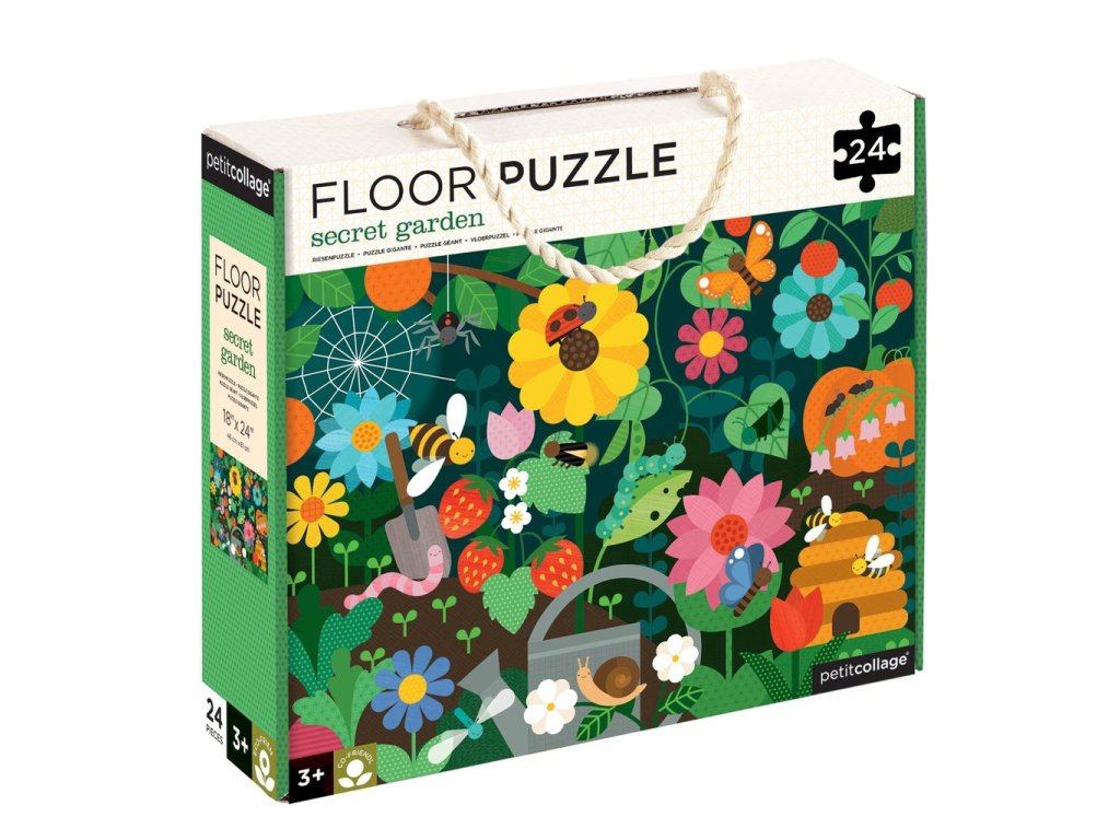 Naše podlahové puzzle se pyšní živou a okouzlující ilustrací. Až Vaše děti zvládnou puzzle pro začátečníky, mohou se začít skládat tyto 24 dílné velké puzzle. Zabaleno v krabici s měkkou bavlněnou rukojetí. Velikost poskládaného puzzle je zhruba 45x60 cm, vhodné pro děti od 3 let. Rozvíjí koordinaci ruka-oko a um řešení problému. Vyrobeno z recyklovaného papíru, natištěno netoxickým, ekologicky šetrným inkoustem ze zeleniny. Produkty Petitcollage jsou vyrobeny s ohledem na zdraví dětí a planety. Splňuje všechny bezpečnostní normy. Hlavním posláním americké firmy Petitcollage je skloubení moderního designu, ekologie a udržitelnosti. Originální výrobky jsou navrhované v Kalifornii a v současné době jsou prodávány po celém světě. Výrobky jsou vyrobeny z recyklovaných materiálů, bambusu nebo kvalitního certifikovaného dřeva. Veškeré používané barvy při výrobě jsou na rostlinné bázi a šetrné k životnímu prostředí. Výrobky jsou navrženy tak, aby rostly s Vašimi dětmi a vytvářely také svým designem krásný a útulný domov.