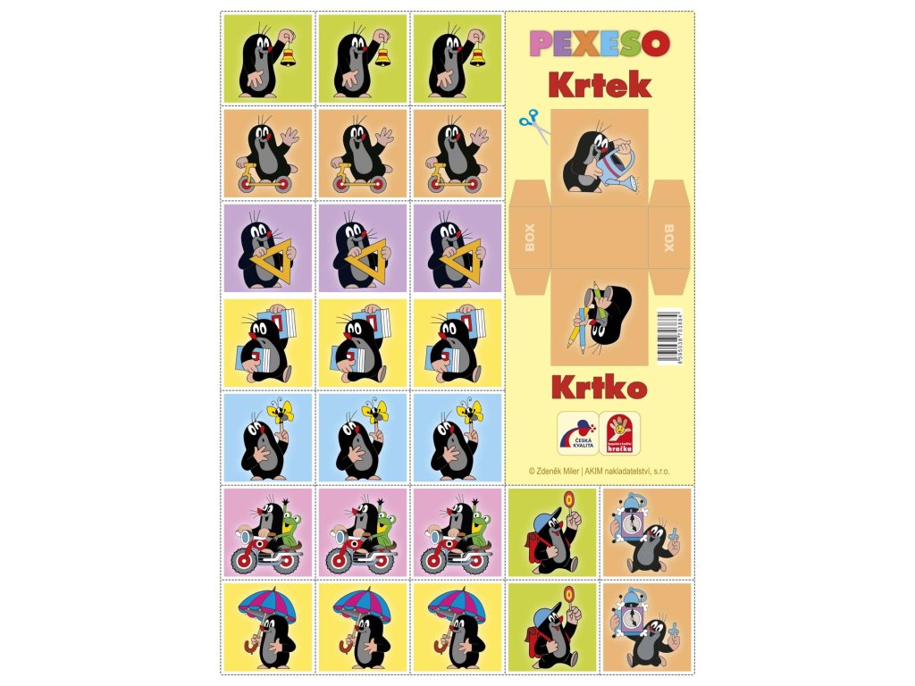 Pexeso Krtek 2 papírové společenská hra 20 obrázkových trojic