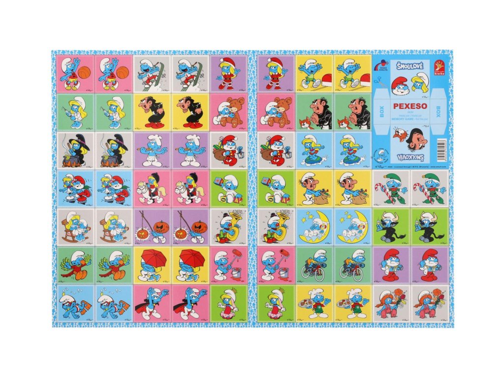Pexeso Šmoulové papírové společenská hra 32 obrázkových dvojic 21,5x30cm