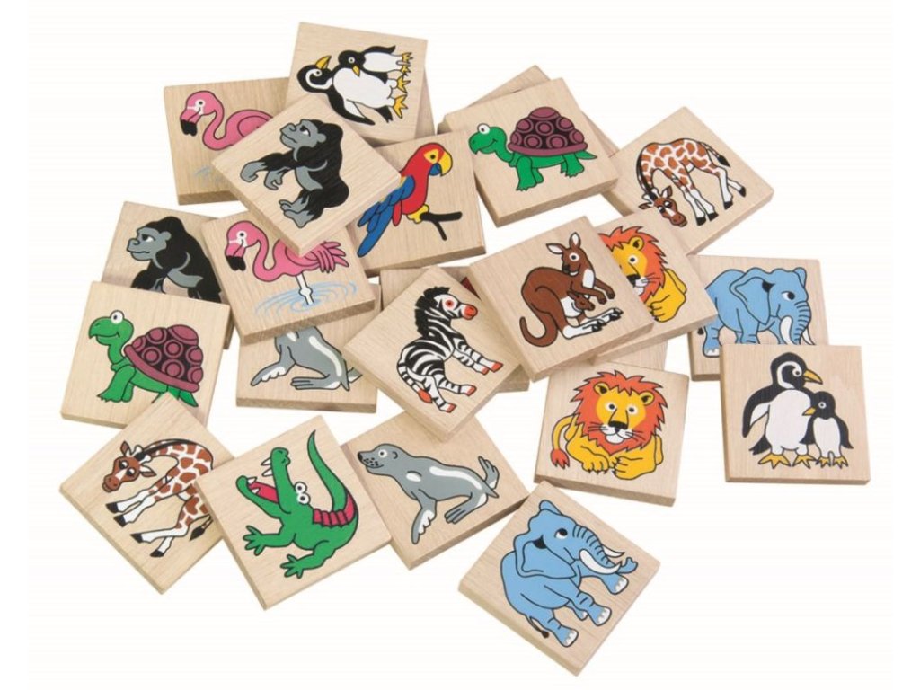 Pexeso z dřevěných kamenů o rozměrech 40x40x6 mm s potiskem zvířátek ze ZOO. Hra pomáhá při procvičení soustředění a paměti. Děti se zábavnou formou naučí poznávat zvířátka.