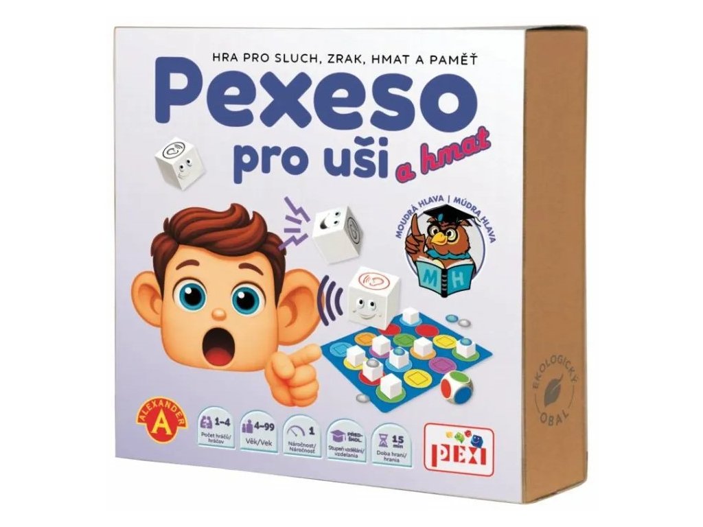 PEXI Pexeso pro uši a hmat - naučná společenská hra pro sluch, zrak a hmat v krabici 24,5x25,5x6cm