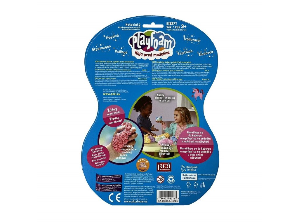 Modelína, která nešpiní, vhodná pro děti od 3 let do 10 let. PlayFoam® Boule 4pack obsahuje 4 barvy se třpytkami, které se blyští na světle. Je lehoučká, nešpinivá, netoxická a nevysychající, zkrátka modelína nové generace. Žádný nepořádek, spousty legrace! Děti vytvoří vše, co je napadne a uklizeno máte za okamžik. Pěnová modelína PlayFoam dovolí nejen předškolním dětem vyjádřit jejich kreativitu - bez nepořádku a bez nutnosti úklízení! Prostě stačí zmáčknout, vytvarovat dle přání, znovu rozmačkat a začít úplně znovu. PlayFoam® nikdy nevyschne, takže modelování nikdy nekončí. A díky nelepivému složení je možné vzít PlayFoam® kamkoliv s sebou a užít si modelování i na cestách! Co je vlastně PLAYFOAM®:Základem modelíny Playfoam® jsou drobné měkké kuličky z pěnového materiálu spojené speciálním pojivem. Kuličky je možné jednu podruhé odebírat.Modelína je opravdu lehoučká, takže se z ní dají vytvářet i velká díla. Ale i když vytváříte velké modely a stavby, modelína se nehroutí a stále drží svůj tvar. Pouze pokud je modelína vystavena vyšší teplotě, může pojivo ztrácet pevnost. Nesvědčí jí například přímý sluneční svit. Pro zpevnění dlouhých a tenkých tvarů např. stožáry, kmenu stromů nebo květin, vložte do hmoty dřívko nebo využijte chlupaté drátky, které obalíte modelínou. Speciální pojivo je nealergenní a netoxické a udrží kuličky vzájemně při sobě, ale nepřichytí se na nábytek nebo předměty ani na podlahu. Dokonce i běžný smyčkový koberec přežije kontakt s modelínou Playfoam® bez úhony! Stačí přiložit malou kuličku z modelíny na odpadlý kousek a je uklizeno.Toto speciální pojivo bylo vyvíjeno v laboratoři přes 2 roky tak, aby splnilo bezpečnostní předpisy a náročné požadavky na jeho speciální vlastnosti. Dokonce ani při dlouhém hraní, kdy se hmota zahřívá v dlaních, nepřichází o své důležité vlastnosti, pro které je u maminek Playfoam® tak ceněná. Obsah balení: 1 oranžová1 růžová1 zelená1 žlutá Hlavní vlastnosti: 4 třpytivé barvyideální pro rozvíjení zručnosti a kreativitypodporuje smyslový a hmatový rozvojnelepí na podložku ani nábyteknikdy nevyschnevhodné i na cesty