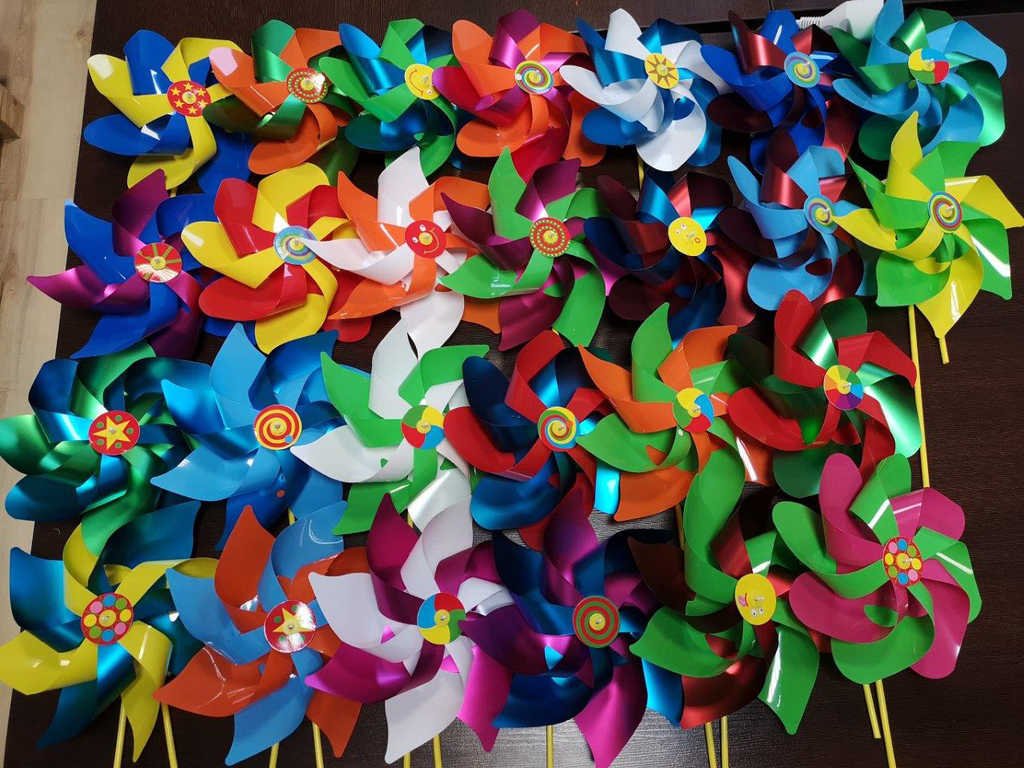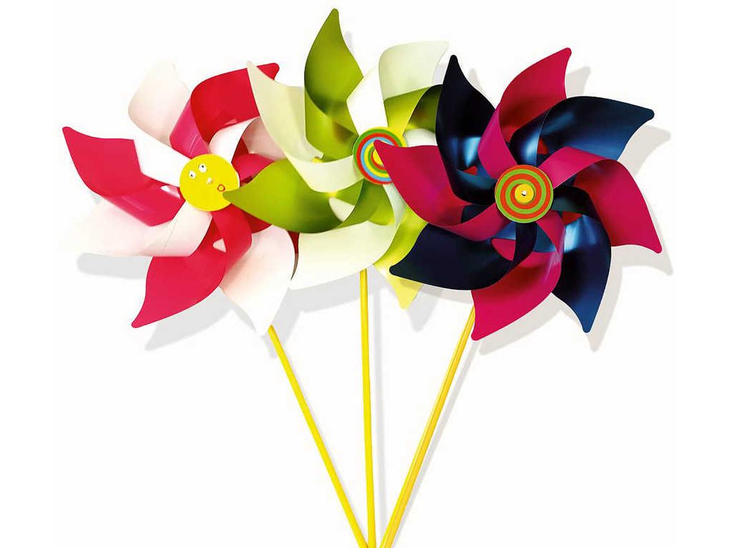 Větrník točící se v záhonu, v truhlíku s květinami na okně nebo jako dárek na narozeninovou oslavu udělá jistě radost malým i velkým. Děti mají rádi barevné a pohybující věci a takový větrník je může zaujmout, mohou se těšit z kaleidoskopu barev, jen co zafouká vítr.